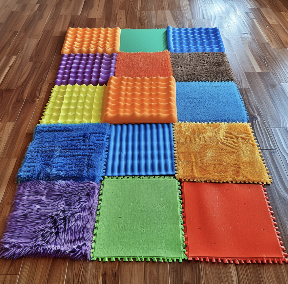 This yoga-mat sized rug “features all the feels.” From sticky to silky, furry to fuzzy. You’ll have to use all the parts of your body to sense what’s underneath you, not just your hands or feet.